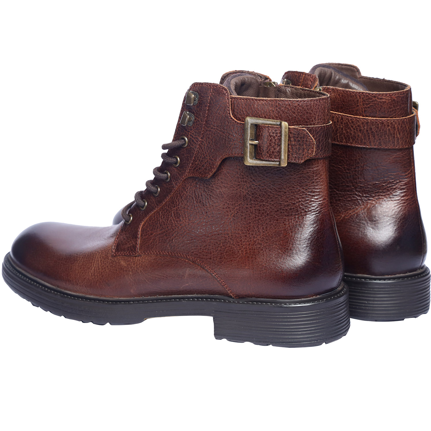 The Ometto boot is expertly crafted from natural milled full-grain brownish tan calfskin, embodying luxury footwear at its finest. This modern take on equestrian heritage features a calfskin ankle strap accented with stirrup-inspired brass hardware. The rubberized T.P.R sole offers extra confidence on all terrain conditions.